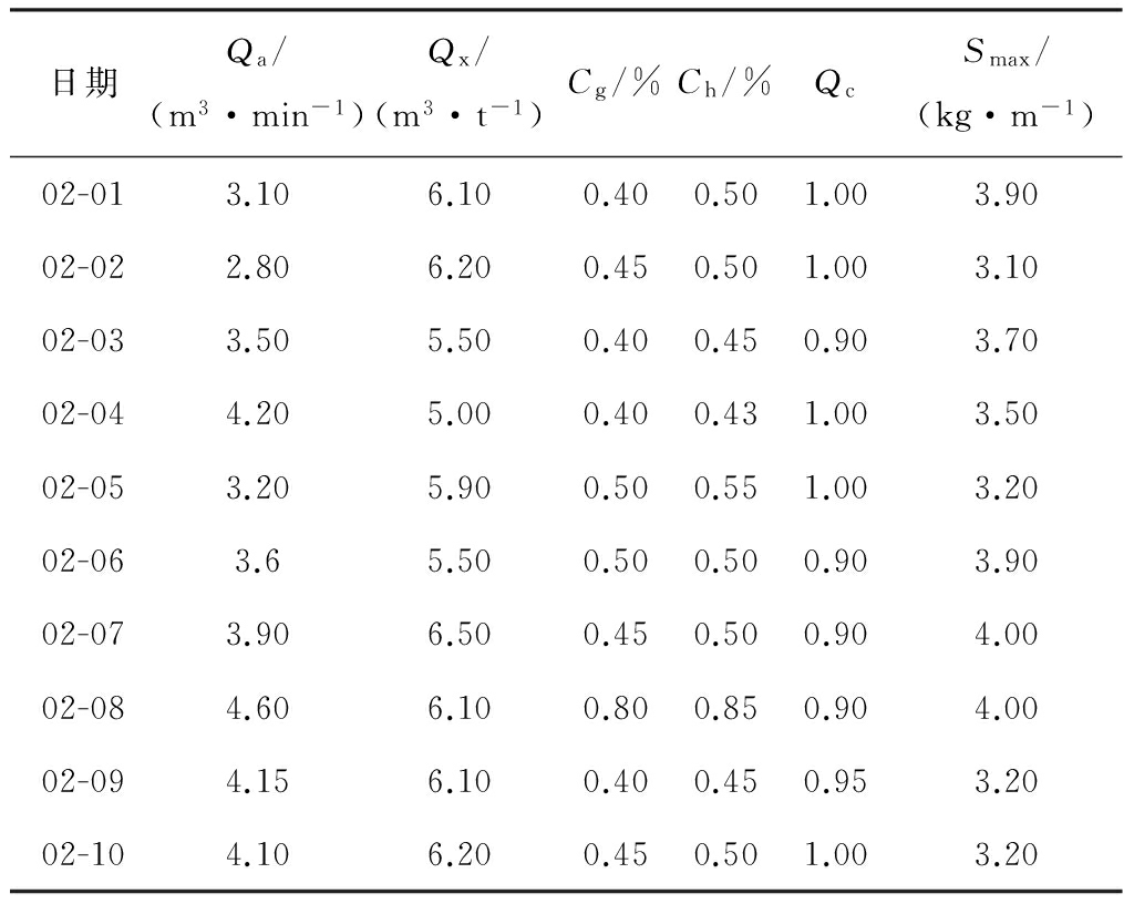 表3 110102工作面10 d的瓦斯安全评价原始数据