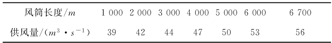 表1 斜井盾构施工不同风筒长度通风机供风量