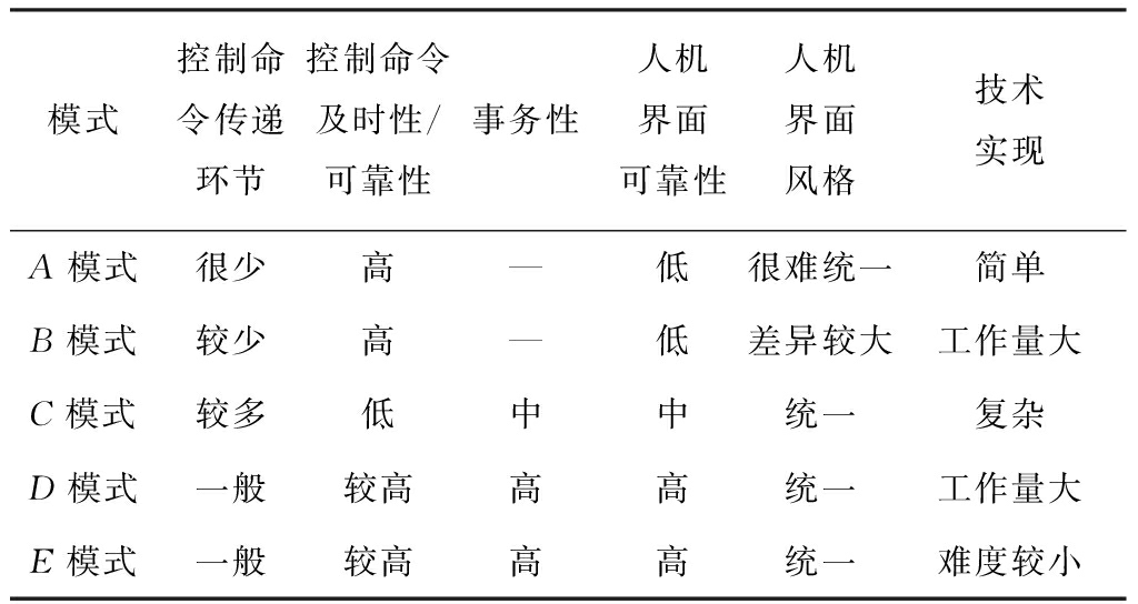 在实际的项目应用中,应当根据实际情况采取适合的模式来实现。总的来说,首先得保证及时性、可靠性和事务性,且从技术上来讲较容易实现,其次再考虑界面风格统一和美观。5种控制模式性能比较见表1。