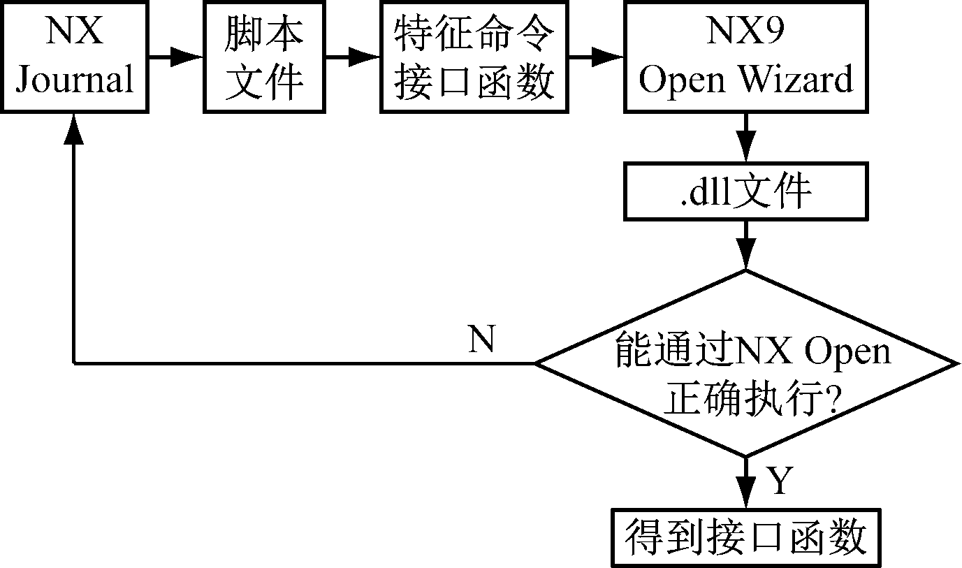 首先利用Journal对零件的有限元分析过程进行录制,并对生成的源代码文件进行研究和分析,明确程序在建立仿真Sim模型时的逻辑思路及通过程序在不同环境下切换的函数入口点。然后对零件的有限元分析过程进行单步录制,通过查看生成的脚本文件,寻找调用某些特征命令的接口函数。接着通过Visual Studio 2012建立NX9 Open Wizard开发项目,并在项目文件中添加获取的接口函数和编程逻辑,编译、链接生成.dll应用程序文件。最后通过NX“文件”菜单下的“NX Open”命令验证程序能否正确执行,若能正确执行,则得到接口函数,否则重复上述过程。