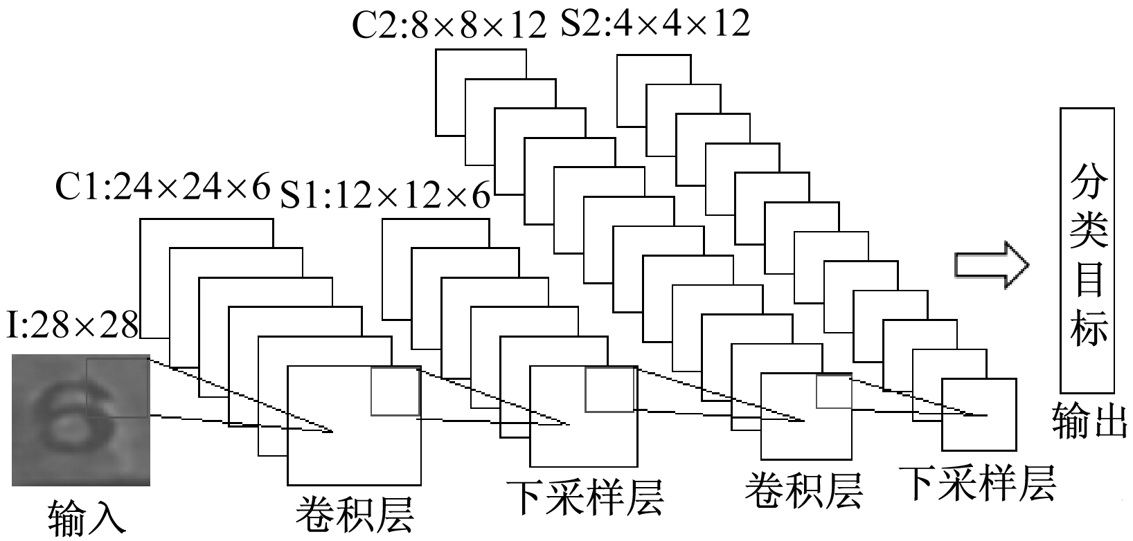 本文采用6层网络,CNNs由2个卷积层、2个下采样层交替组成,如图4所示。
