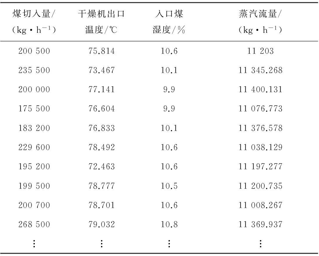 要保证煤料水分控制系统中出口煤湿度的稳定,关键是控制蒸汽的流量。选取某厂过往一段时间的数据,通过对电流、压力等参数与出口煤湿度的相关性分析,考虑到实施的可行性以及与出口煤湿度相关性最高的独立变量,最终确定入口煤湿度、煤切入量、干燥机出口温度和蒸汽流量分别作为系统模型的输入和输出。